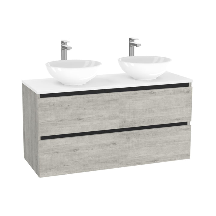 München Badkamermeubel 120 cm Lissabon - Onderkast MDF - Softclose greeploos 4 lades Inclusief Toledo keramische waskom met wastafelblad