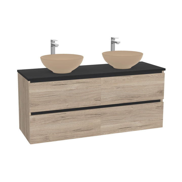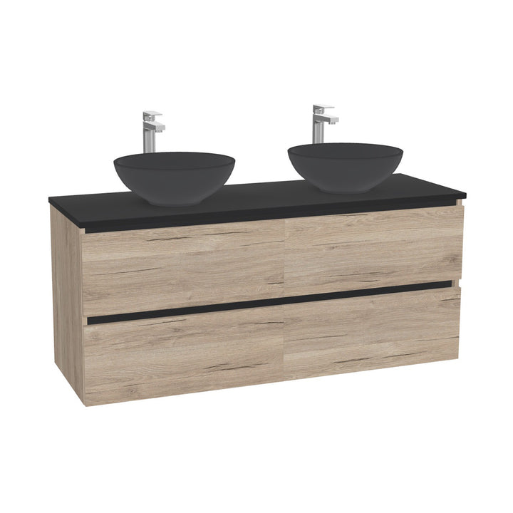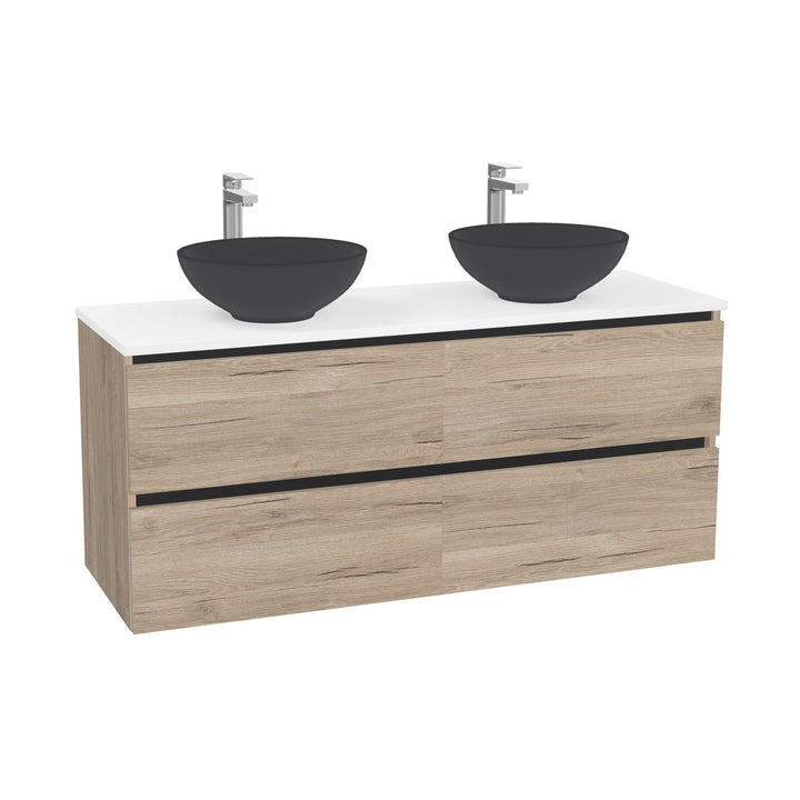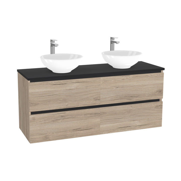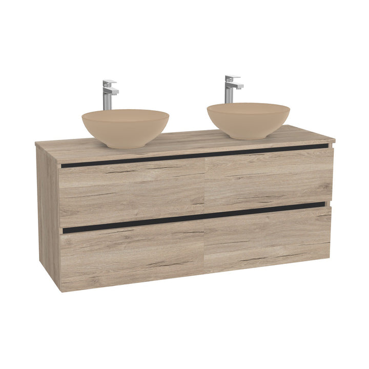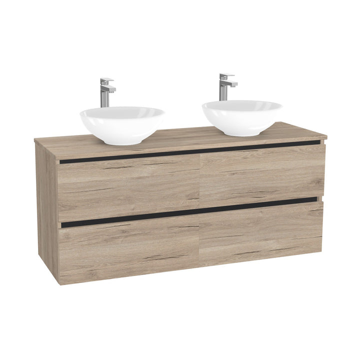 München Badkamermeubel 140 cm Duitse Eik - Onderkast MDF - Softclose greeploos 4 lades Inclusief Toledo keramische waskom met wastafelblad