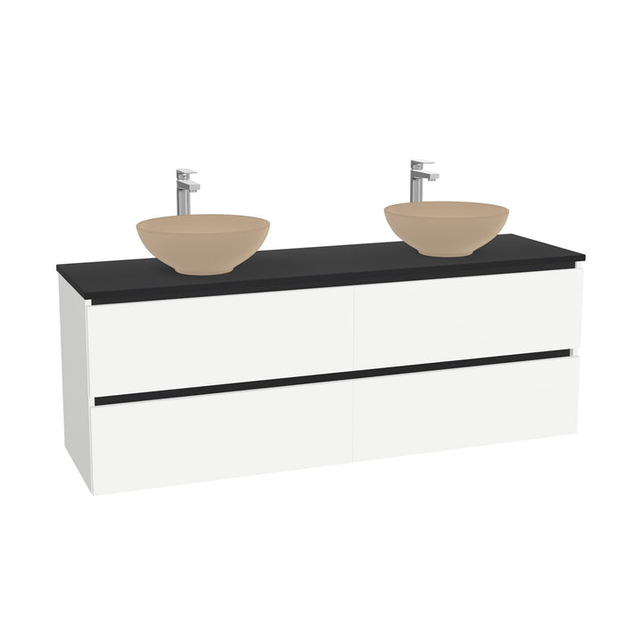 München Badkamermeubel 160 cm Hoogglans Wit - Onderkast MDF - Softclose greeploos 4 lades Inclusief Toledo keramische waskom met wastafelblad