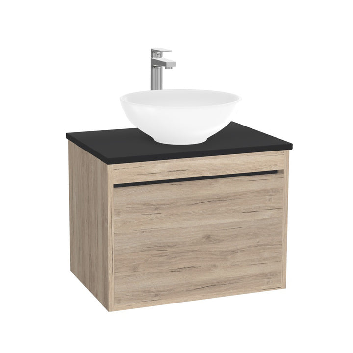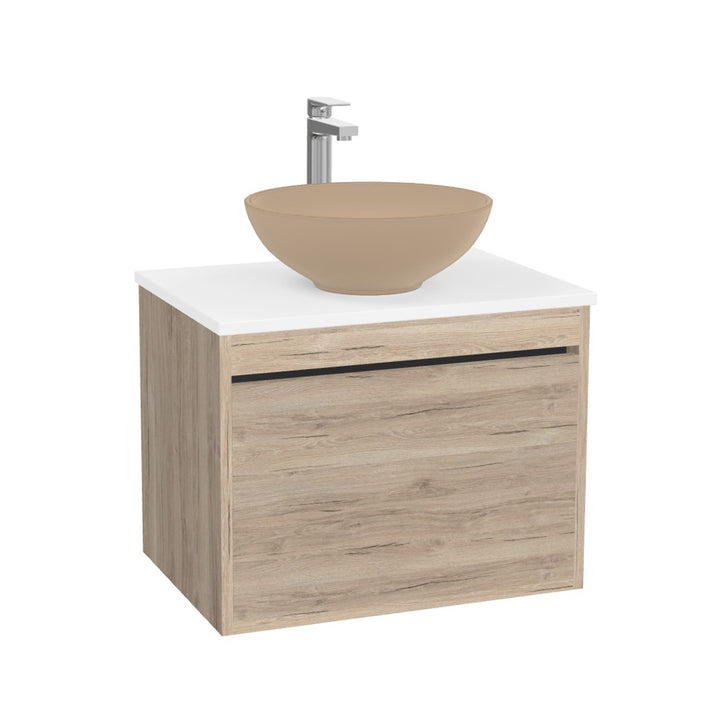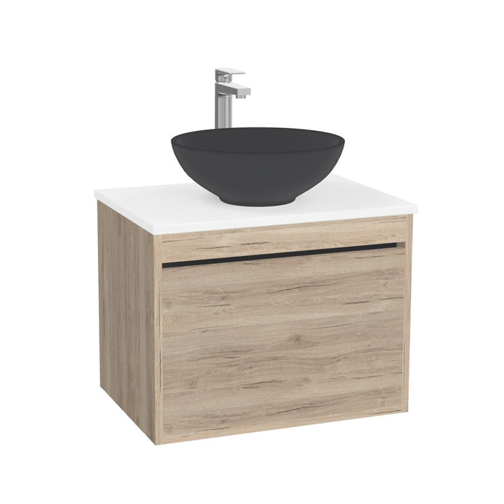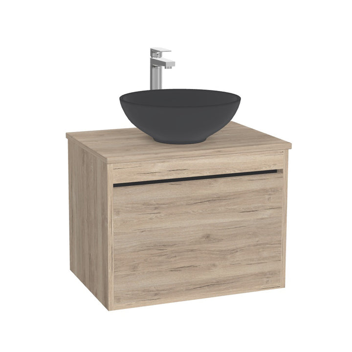 Oberhausen Badkamermeubel 65 cm Duitse Eik - Onderkast MDF - Softclose semi handgreep 1 lade Inclusief Toledo keramische waskom met wastafelblad