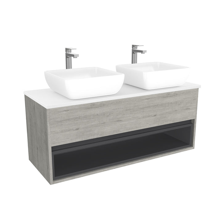 Pohlheim Badkamermeubel 120 cm Lissabon - Onderkast MDF - Softclose Greeploos 1 lade Inclusief keramische waskom met wastafelblad