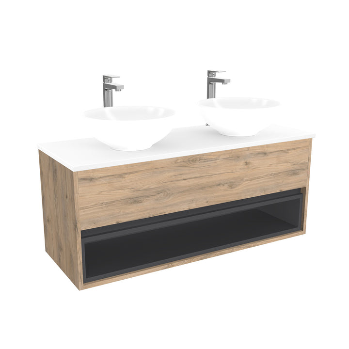 Pohlheim Badkamermeubel 120 cm Dorado - Onderkast MDF - Softclose Greeploos 1 lade Inclusief keramische waskom met wastafelblad
