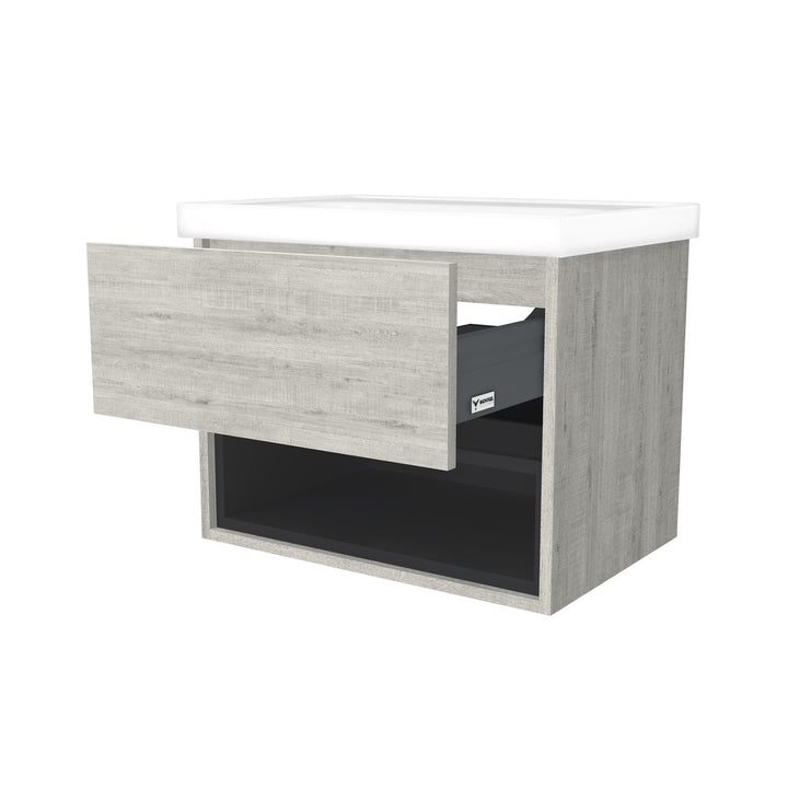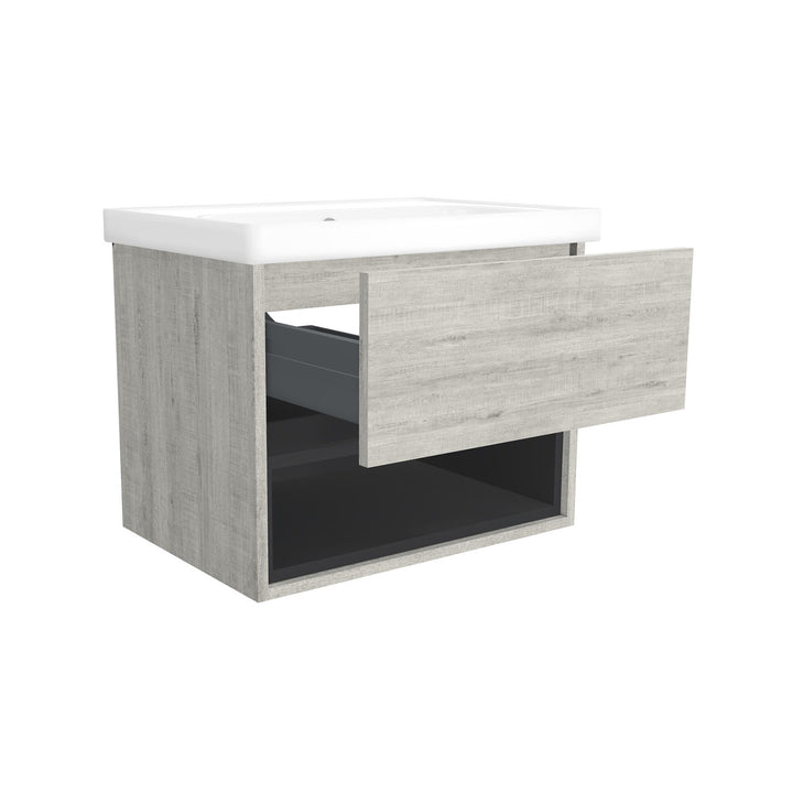 Pohlheim 65 cm Lissabon - Onderkast MDF Softclose Greeploos 1 lade met Keramische Wastafel 1 kraangat - Wastafelmeubel Met Frame Wastafels