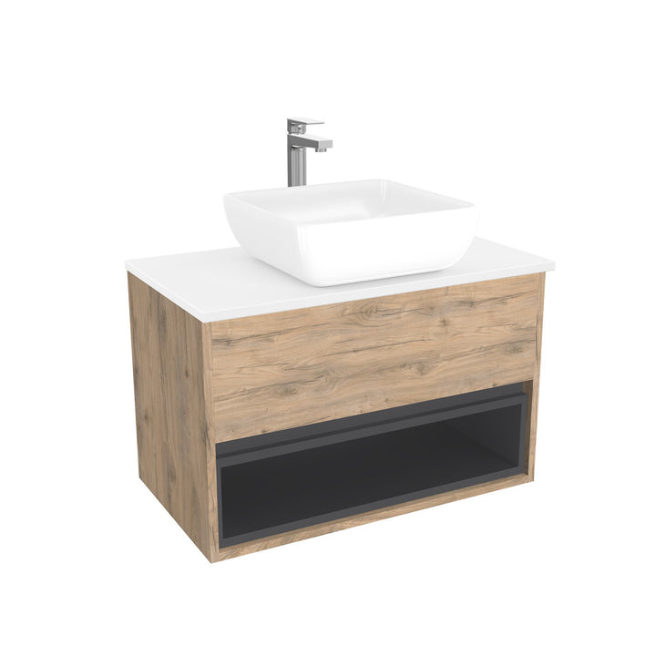 Pohlheim Badkamermeubel 80 cm Dorado - Onderkast MDF - Softclose Greeploos 1 lade Inclusief keramische waskom met wastafelblad