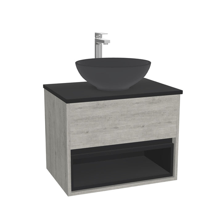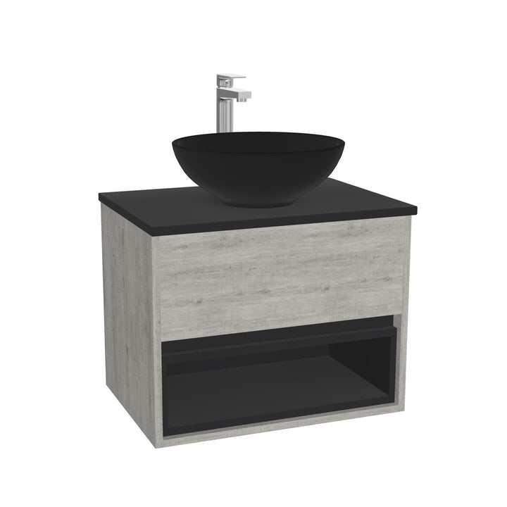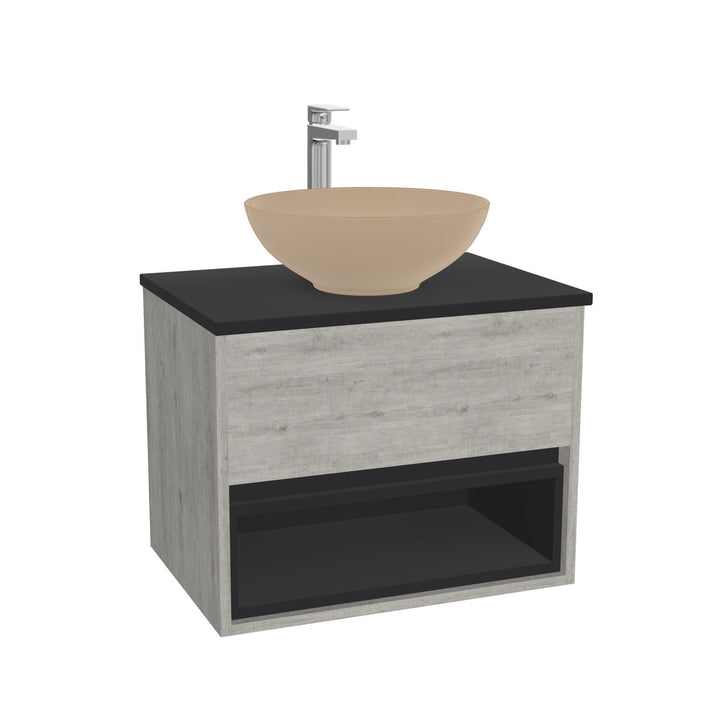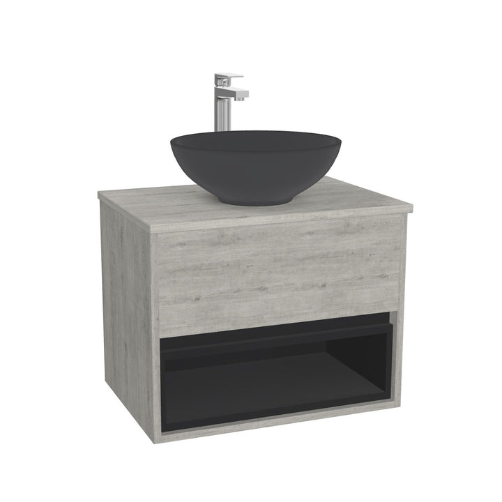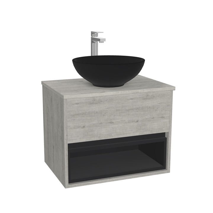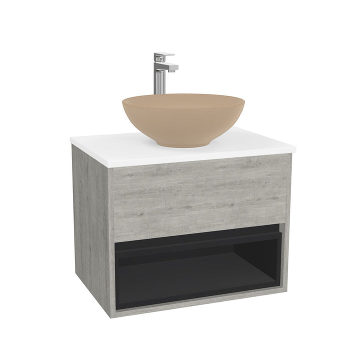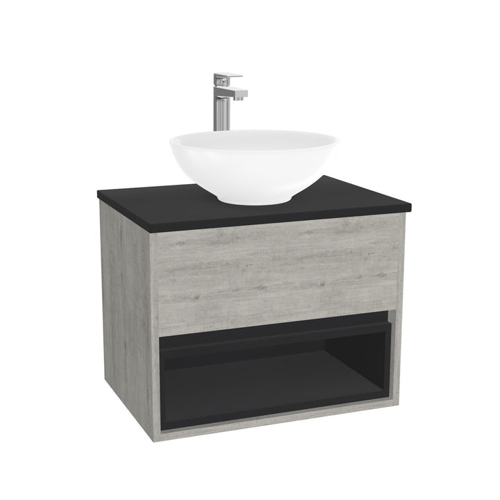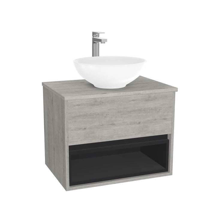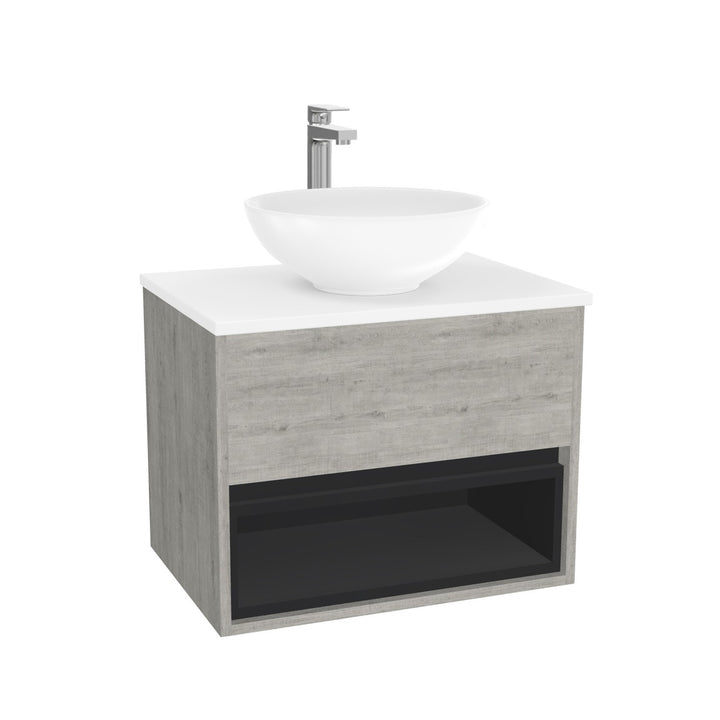 Pohlheim Badkamermeubel 65 cm Lissabon - Onderkast MDF - Softclose greeploos 1 lade Inclusief Toledo keramische waskom met wastafelblad