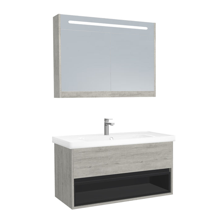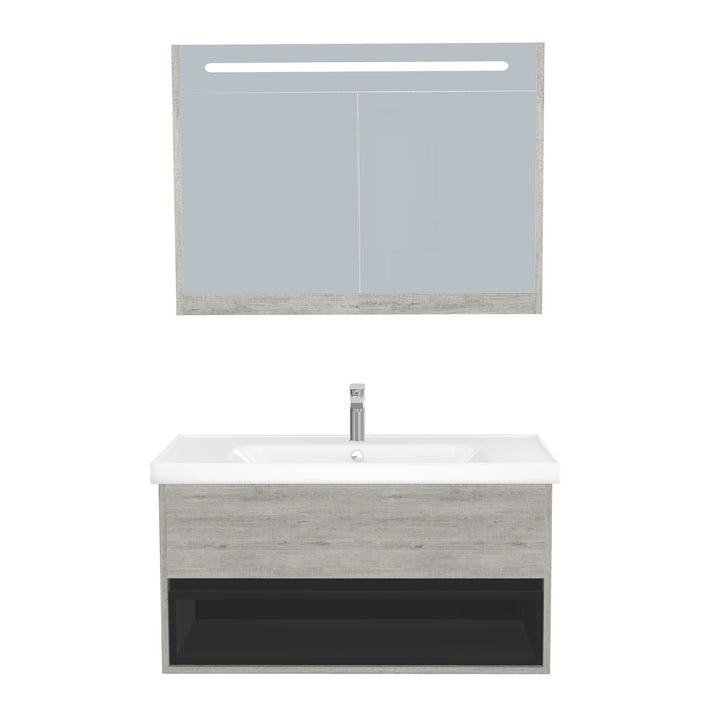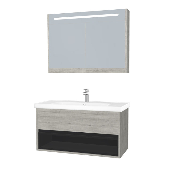 Pohlheim Badkamermeubel Set 100 cm Lissabon - Onderkast MDF Softclose Greeploos 1 lade met Keramische Wastafel 1 kraangat en Badkamerspiegelkast met Led-verlichting